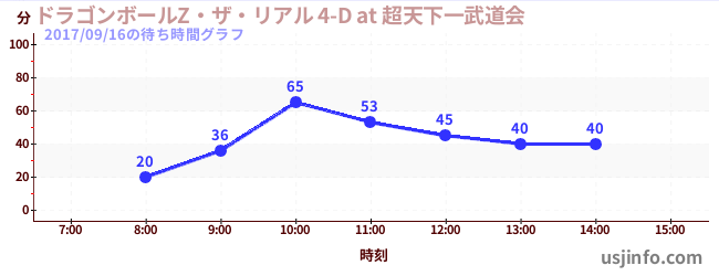 • ドラゴンボールZ・ザ・リアル 4-D at 超天下一武道会$B$N(B2017年09月16日の待ち時間