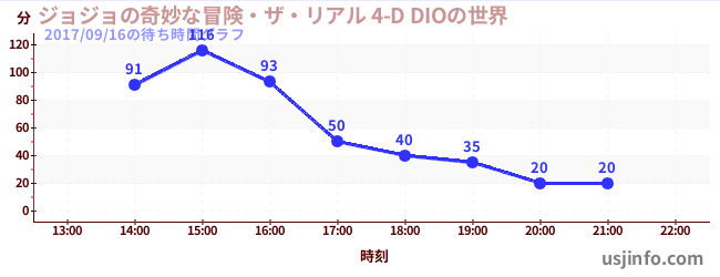 • ジョジョの奇妙な冒険・ザ・リアル 4-D DIOの世界$B$N(B2017年09月16日の待ち時間