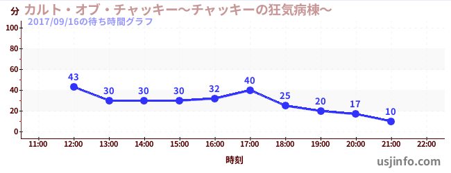 • カルト・オブ・チャッキー~チャッキーの狂気病棟~$B$N(B2017年09月16日の待ち時間