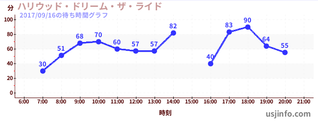 • ハリウッド・ドリーム・ザ・ライド$B$N(B2017年09月16日の待ち時間