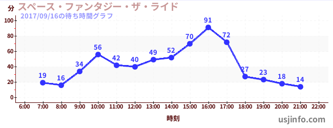 • スペース・ファンタジー・ザ・ライド$B$N(B2017年09月16日の待ち時間