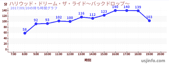 • ハリウッド・ドリーム・ザ・ライド〜バックドロップ〜$B$N(B2017年09月20日の待ち時間