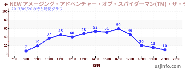 • NEW アメージング・アドベンチャー・オブ・スパイダーマン(TM)・ザ・ライド 4K3D$B$N(B2017年09月20日の待ち時間