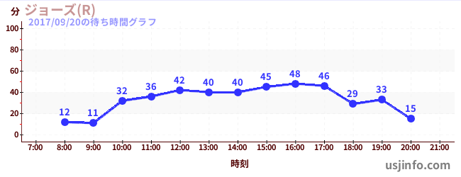 • ジョーズ(R)$B$N(B2017年09月20日の待ち時間