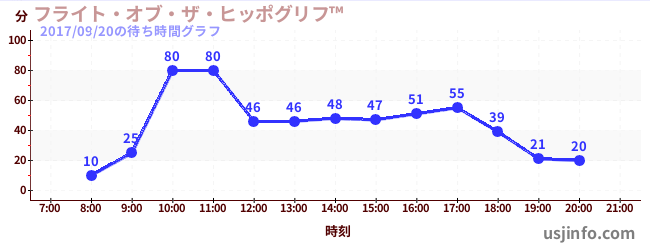 • フライト・オブ・ザ・ヒッポグリフ™$B$N(B2017年09月20日の待ち時間