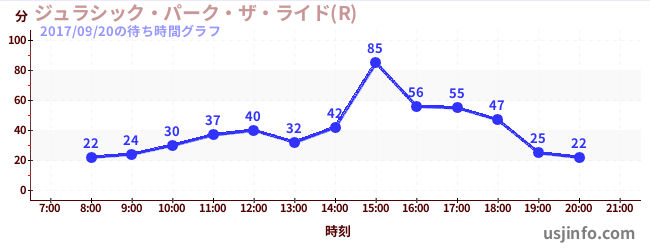• ジュラシック・パーク・ザ・ライド(R)$B$N(B2017年09月20日の待ち時間