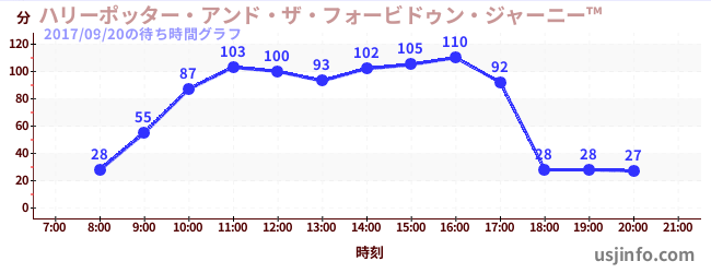 • ハリーポッター・アンド・ザ・フォービドゥン・ジャーニー™$B$N(B2017年09月20日の待ち時間