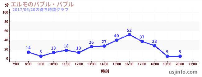 • エルモのバブル・バブル$B$N(B2017年09月20日の待ち時間