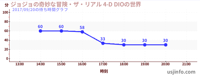 • ジョジョの奇妙な冒険・ザ・リアル 4-D DIOの世界$B$N(B2017年09月20日の待ち時間
