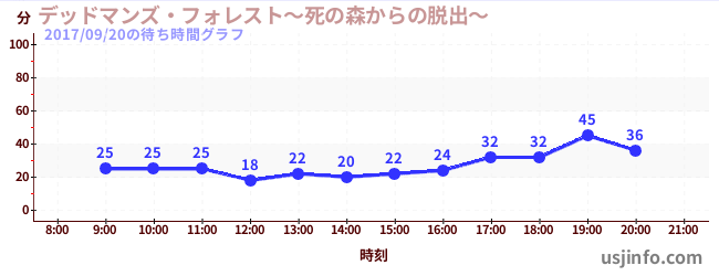 • デッドマンズ・フォレスト~死の森からの脱出~$B$N(B2017年09月20日の待ち時間