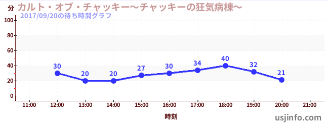 • カルト・オブ・チャッキー~チャッキーの狂気病棟~$B$N(B2017年09月20日の待ち時間