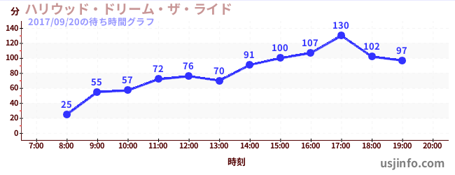 • ハリウッド・ドリーム・ザ・ライド$B$N(B2017年09月20日の待ち時間