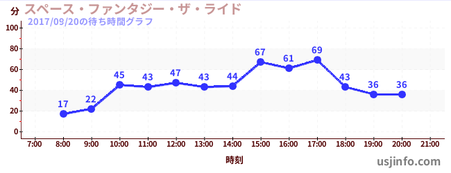 • スペース・ファンタジー・ザ・ライド$B$N(B2017年09月20日の待ち時間