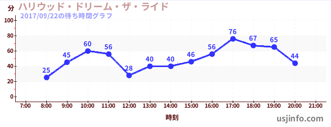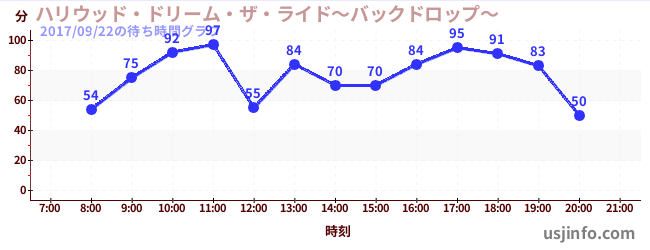 • ハリウッド・ドリーム・ザ・ライド〜バックドロップ〜$B$N(B2017年09月22日の待ち時間