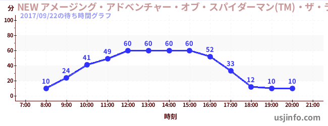 • NEW アメージング・アドベンチャー・オブ・スパイダーマン(TM)・ザ・ライド 4K3D$B$N(B2017年09月22日の待ち時間