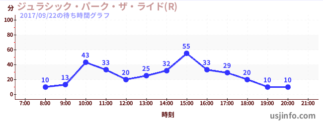 • ジュラシック・パーク・ザ・ライド(R)$B$N(B2017年09月22日の待ち時間