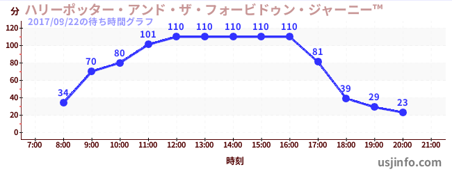 • ハリーポッター・アンド・ザ・フォービドゥン・ジャーニー™$B$N(B2017年09月22日の待ち時間