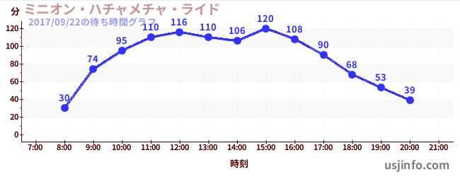 • ミニオン・ハチャメチャ・ライド$B$N(B2017年09月22日の待ち時間