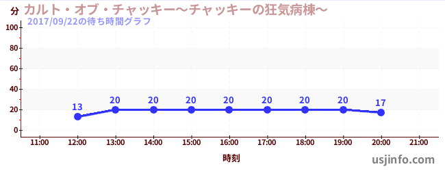 • カルト・オブ・チャッキー~チャッキーの狂気病棟~$B$N(B2017年09月22日の待ち時間