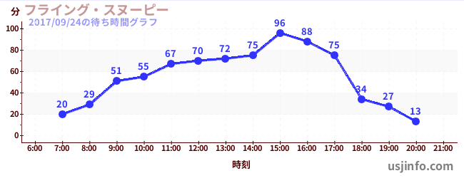 • フライング・スヌーピー$B$N(B2017年09月24日の待ち時間