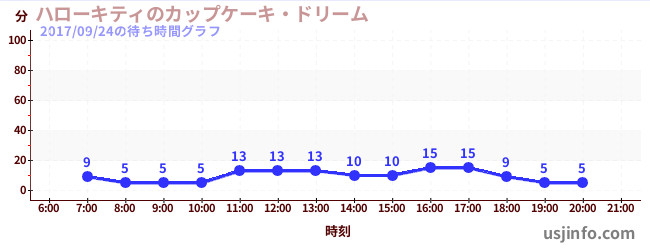 • ハローキティのカップケーキ・ドリーム$B$N(B2017年09月24日の待ち時間