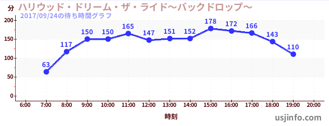 • ハリウッド・ドリーム・ザ・ライド〜バックドロップ〜$B$N(B2017年09月24日の待ち時間