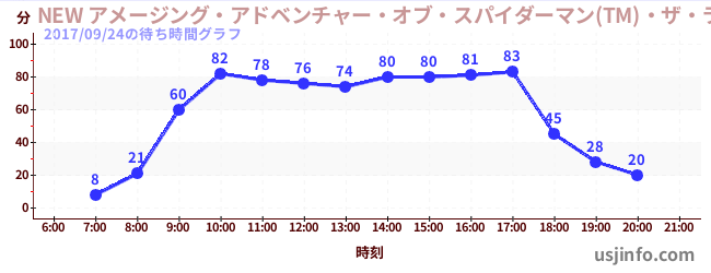 • NEW アメージング・アドベンチャー・オブ・スパイダーマン(TM)・ザ・ライド 4K3D$B$N(B2017年09月24日の待ち時間