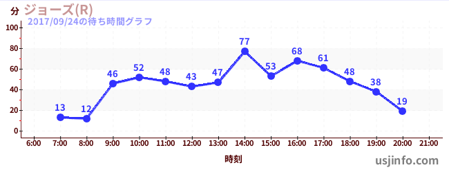 • ジョーズ(R)$B$N(B2017年09月24日の待ち時間