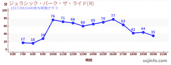 • ジュラシック・パーク・ザ・ライド(R)$B$N(B2017年09月24日の待ち時間