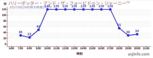• ハリーポッター・アンド・ザ・フォービドゥン・ジャーニー™$B$N(B2017年09月24日の待ち時間