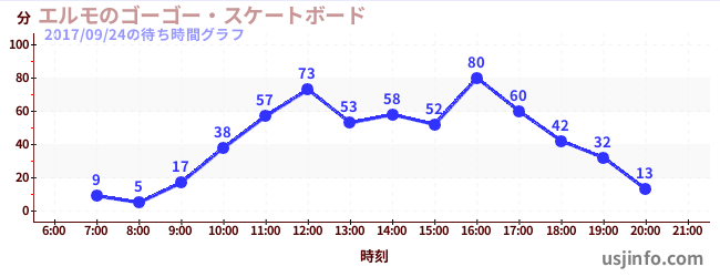 • エルモのゴーゴー・スケートボード$B$N(B2017年09月24日の待ち時間