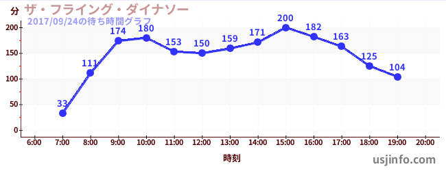 • ザ・フライング・ダイナソー$B$N(B2017年09月24日の待ち時間