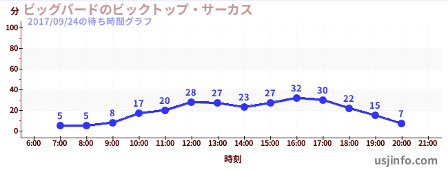 • ビッグバードのビックトップ・サーカス$B$N(B2017年09月24日の待ち時間