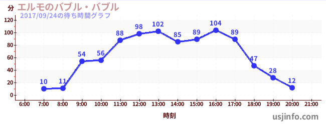 • エルモのバブル・バブル$B$N(B2017年09月24日の待ち時間
