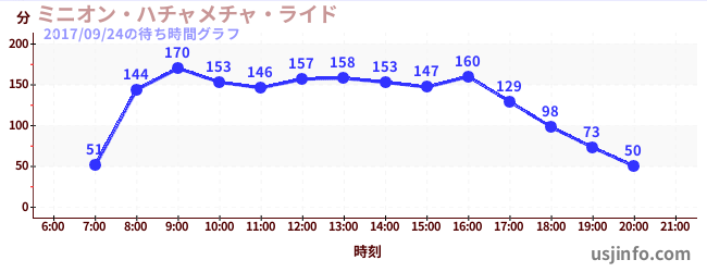 • ミニオン・ハチャメチャ・ライド$B$N(B2017年09月24日の待ち時間