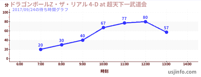 • ドラゴンボールZ・ザ・リアル 4-D at 超天下一武道会$B$N(B2017年09月24日の待ち時間