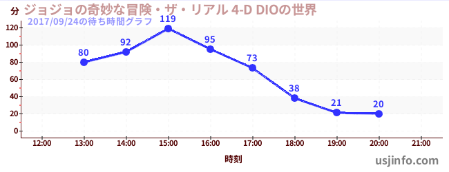 • ジョジョの奇妙な冒険・ザ・リアル 4-D DIOの世界$B$N(B2017年09月24日の待ち時間