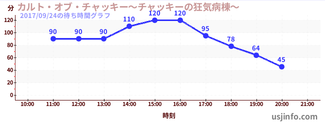 • カルト・オブ・チャッキー~チャッキーの狂気病棟~$B$N(B2017年09月24日の待ち時間