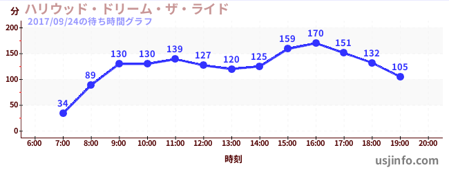 • ハリウッド・ドリーム・ザ・ライド$B$N(B2017年09月24日の待ち時間