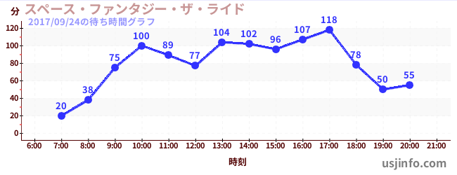 • スペース・ファンタジー・ザ・ライド$B$N(B2017年09月24日の待ち時間