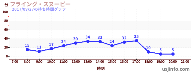 • フライング・スヌーピー$B$N(B2017年09月27日の待ち時間