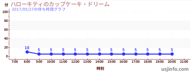 • ハローキティのカップケーキ・ドリーム$B$N(B2017年09月27日の待ち時間