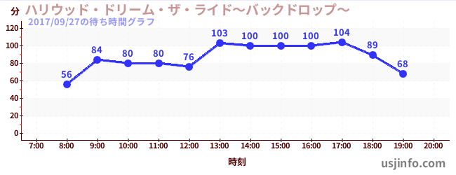 • ハリウッド・ドリーム・ザ・ライド〜バックドロップ〜$B$N(B2017年09月27日の待ち時間