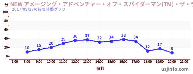 • NEW アメージング・アドベンチャー・オブ・スパイダーマン(TM)・ザ・ライド 4K3D$B$N(B2017年09月27日の待ち時間