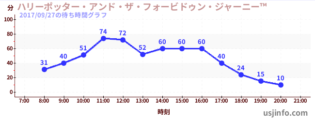 • ハリーポッター・アンド・ザ・フォービドゥン・ジャーニー™$B$N(B2017年09月27日の待ち時間