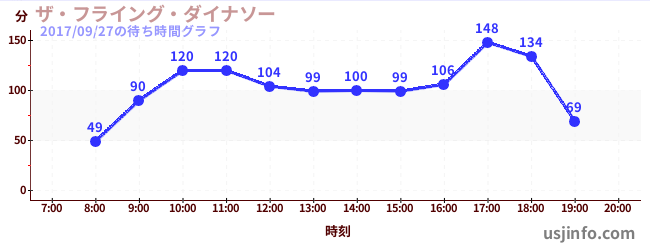 • ザ・フライング・ダイナソー$B$N(B2017年09月27日の待ち時間