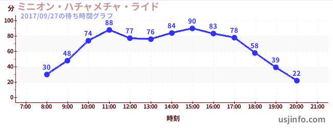 • ミニオン・ハチャメチャ・ライド$B$N(B2017年09月27日の待ち時間