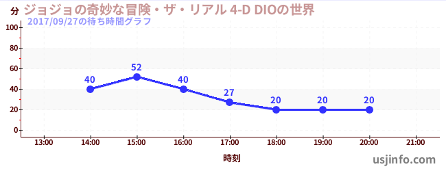 • ジョジョの奇妙な冒険・ザ・リアル 4-D DIOの世界$B$N(B2017年09月27日の待ち時間