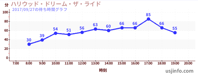 • ハリウッド・ドリーム・ザ・ライド$B$N(B2017年09月27日の待ち時間