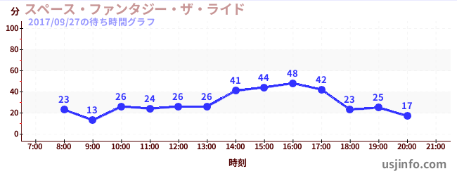 • スペース・ファンタジー・ザ・ライド$B$N(B2017年09月27日の待ち時間
